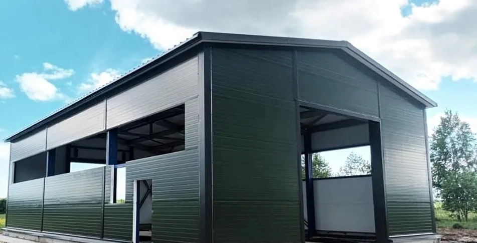 Срок службы — более 30 лет. Стальной каркас с антикоррозийным покрытием и сэндвич‑панели устойчивы к климатическим нагрузкам в Майне: снеговым (до 240 кг/м²), ветровым (до 32 м/с) и температурным перепадам.